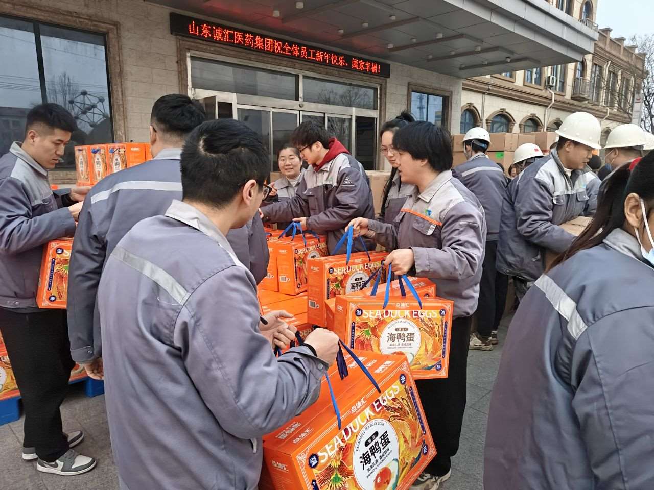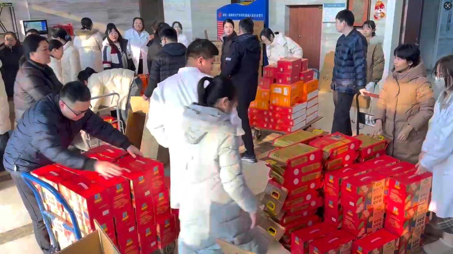 春節(jié)福利發(fā)放現(xiàn)場一片溫馨和諧的喜慶氛圍,大家相互協(xié)作、默契配合,搬運(yùn)物品、核對數(shù)量、維護(hù)秩序,把一份份承載著公司關(guān)懷的年貨福利發(fā)放到每一個職工手中。手抬肩扛、喜在心上,幸福感躍然眉間。沉甸甸的福利不僅給大家?guī)砹诵麓旱淖8?,也給每位職工心里帶來了滿滿的歸屬感和深深的認(rèn)可,切實(shí)感受到誠匯的關(guān)懷與回饋。